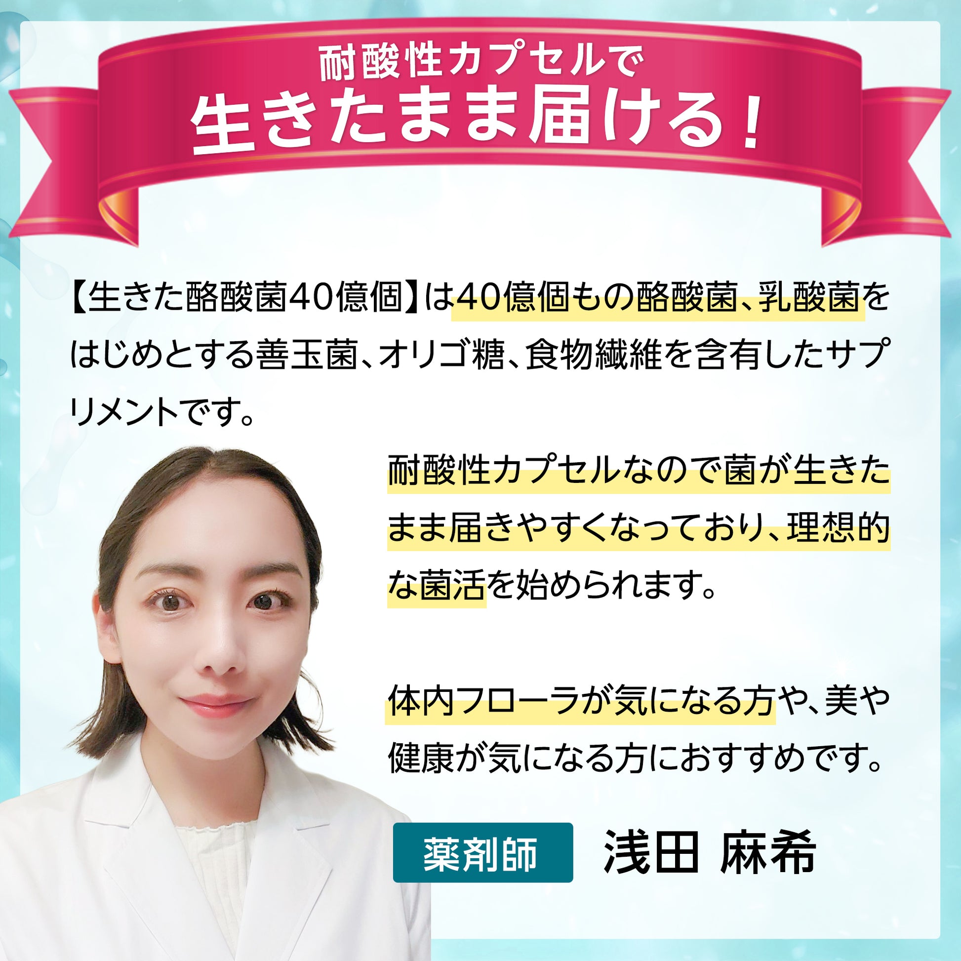 【耐酸性カプセルを採用】胃酸に強い耐酸性カプセルを使用。善玉菌を奥まで届けます。